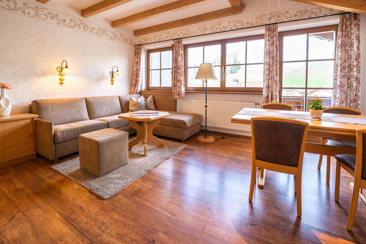 Apartment 06 is one of our two attic-floor apartments. With its generous size and two bedrooms, it is a perfect choice for families and groups, while the many windows and the loving details make it very bright and welcoming.
